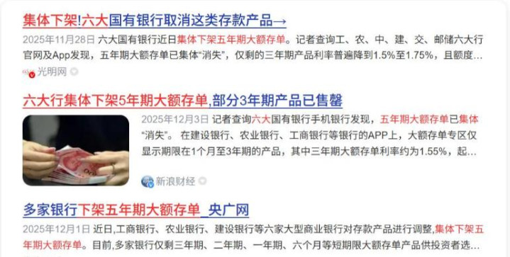 六大行早就把五年期大额存单给下架了,中小银行更干脆,直接取消了部分三年期、五年期的定存产品。