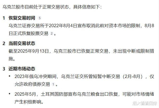 最新权威信息显示,截至2025年9月13日,乌克兰股市已恢复正常交易,未出现中断或限制等措施。