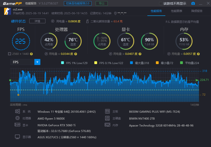那么游戏实测到底会怎样呢?我们再来看下,这套配置运行2K网游和热门单机时的帧数表现:三角洲行动/永劫无间/CS GOII/剑星四款游戏。