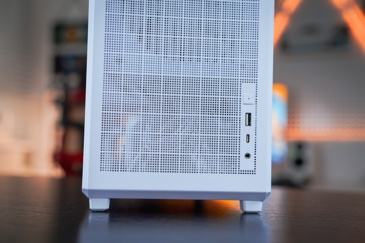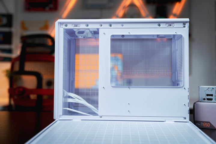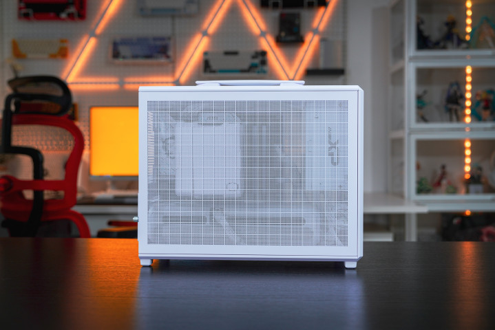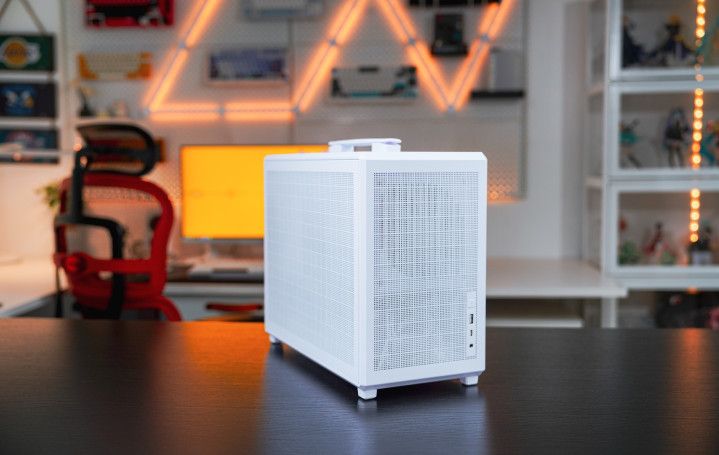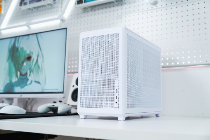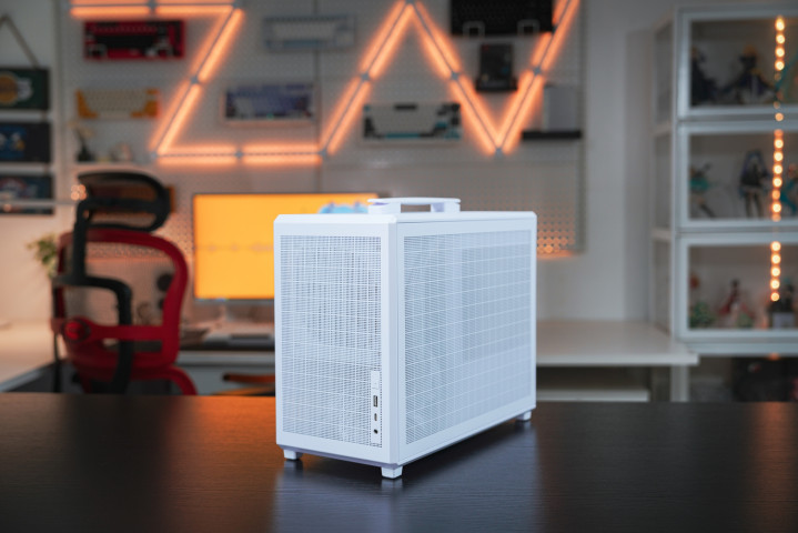 采用立体四面散热网孔设计,这对于需要搭配风冷方案又喜欢轻便小箱体(尺寸仅为:长401mm*宽185mm*高330mm)的玩家来提供不错的选项,重量是小于5KG的,外加顶部配备提手在搬动时提供了不俗的便携性。标配TYPE-C接口,5风扇位,支持2*SSD或1SSD+1HDD硬盘存储组合搭配。