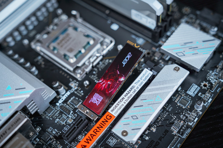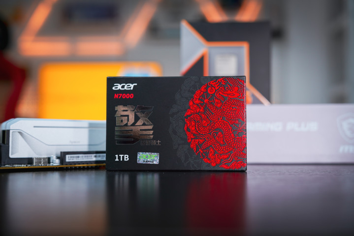 固态搭配的容量上,因为受限于预算也只能暂时选择1Tb容量的搭配了,毕竟B650M是支持双PCIe4.0的,以后还可以进行存储扩容。这次选择的是来自宏碁影骑士擎 PCIe4.0 固态,读(7200MB/s)写(6200 MB/s)速度也算是中规中矩的无缓固态,足以满足日常使用了。