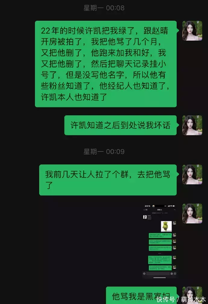 而许凯说她坏话的原因也很简单,女方称许凯认为她把聊天记录发到微博是故意害他,心机重。尴尬的是许凯对这段关系的定义在朋友口中也不一样,女方称2022年许凯要官宣她,许凯说坏话的时候则不承认恋情,否认拍拖,只是睡过几次。