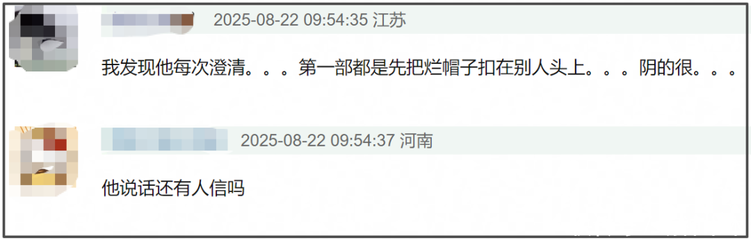 看到许凯被锤后,不少网友认为于正这是遭了回旋镖。此前,他表示“演员要经得起诋毁”,对于自己说过的一些假话表示“骗你就骗你了”,如今许凯被实名锤出轨则直接跳脚,完全打脸了自己的言行。而他家艺人出事第一反应指责旁人问题的路径也很低级。