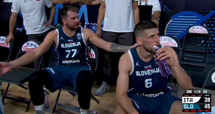 第二节意大利单节29-21追回8分,半场打完斯洛文尼亚还领先10分;东契奇回到替补席,继续带伤坚持比赛——助攻队友,单挑丰泰基奥,对抗后高难度抛投得分,外线再中三分;由于被意大利缩小分差,暂停期间东契奇摊手并且训斥队友。